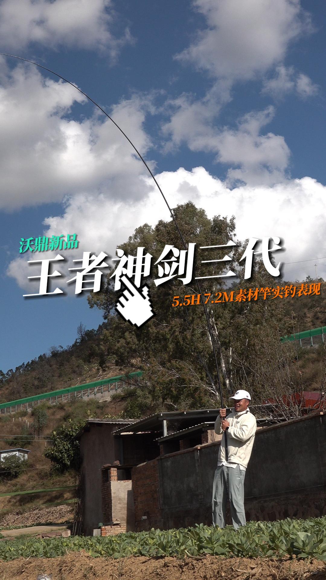 上一期内容提到 本期我们将邀请专业钓手 来实钓测评我们的王者神剑三代 今天就由刘松松老师的爱徒 沃鼎签约钓手俞峰磊 带来王者神剑三代5.5H7.2m素材竿 挑战青鱼的实钓分享 究竟能否挑战成功呢? 让我们一起拭目以待~ 俞峰磊作钓的水域为 云南楚雄的黑坑池 视频中可见 王者神剑三代升级后硬度更强 在抬竿起鱼时能承受较强的拉力而不塌腰 8层交叉逆丝卷制工艺的使用 使其在不损失竿稍柔韧度的前提下 减少了竿身受力时的晃动和扭曲 刺鱼轻松且迅猛有力 无惧拉扯 一击即中 拥有专业钓手都点赞的强悍性能 王者神剑三代升级后 竿身受力时力量分布更为均匀 作钓体验更加理想 在面对视频中的青鱼时 王者神剑三代 韧性强 不塌腰 竿身弧度圆润饱满 在碧蓝的天空中划出一道美丽的弧线 在实际作钓过程中 竿子肉眼可见的优异腰力表现 无论大鱼如何发力 在整个上鱼的过程中都能轻松掌控 毫不费力 控鱼遛鱼游刃有余又不失体验感 最后挑战青鱼成功 王者神剑三代 回鱼快 手感好 钓小鱼玩手感不在话下 钓青鱼鲢鱅也完全不惧 对钓竿性能要求高的钓友们 它一定不会让你失望 对王者神剑系列情有独钟的钓友们 也一定会对它爱不释手~
