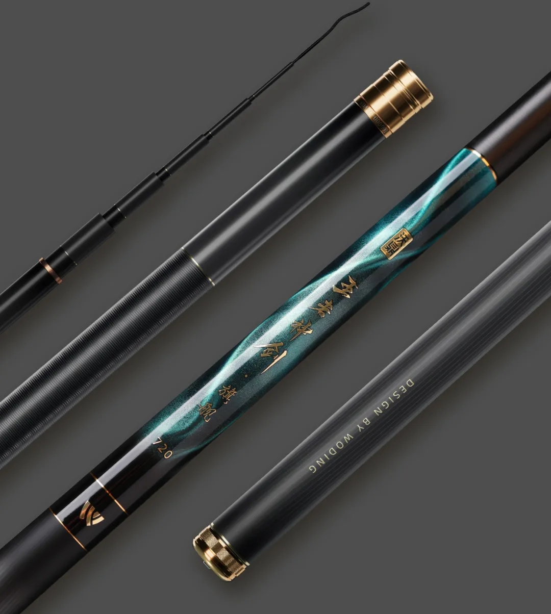 很多沃鼎的钓友们都知道 王者神剑系列 是我们沃鼎十周年的诚意之作 【王者神剑旗舰版】超轻大物竿 更是诚意满分实力硬核的集大成之作 本期我们将继续揭秘 它的设计理念、制作工艺 硬度、米段设计和参考鱼情等 钓友们速来围观~ 王者神剑旗舰版 在王者神剑系列鱼竿的辉煌荣耀之上 我们延续其精髓推出的全新力作 【王者神剑旗舰版】超轻大物竿 不仅是对过往经典之作的致敬与传承 更是首次启用国产高性能新材料 进行鱼竿新品的研发 为能打造出更高品质的产品执着追求 竿身主体采用了天青色 灵感源自烟雨初歇的景象 那天际线似青非青 朦胧而氤氲 充满了自然之美 为了完美呈现这抹天青之色 我们选取了立体幻影磁性漆作为工艺之选 在光影的交织下 鱼竿表面展现出如梦似幻的色彩流转 既深邃又迷离 无任何花俏纹饰 却让人沉醉其中